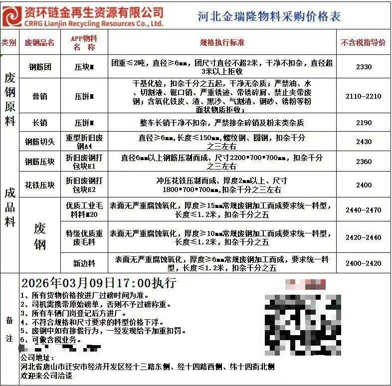 東華創(chuàng)源基地降**元,廢鋼采購調(diào)價:****年*月**日**:**起,以過磅毛重時間為準(zhǔn),詳見價目表。