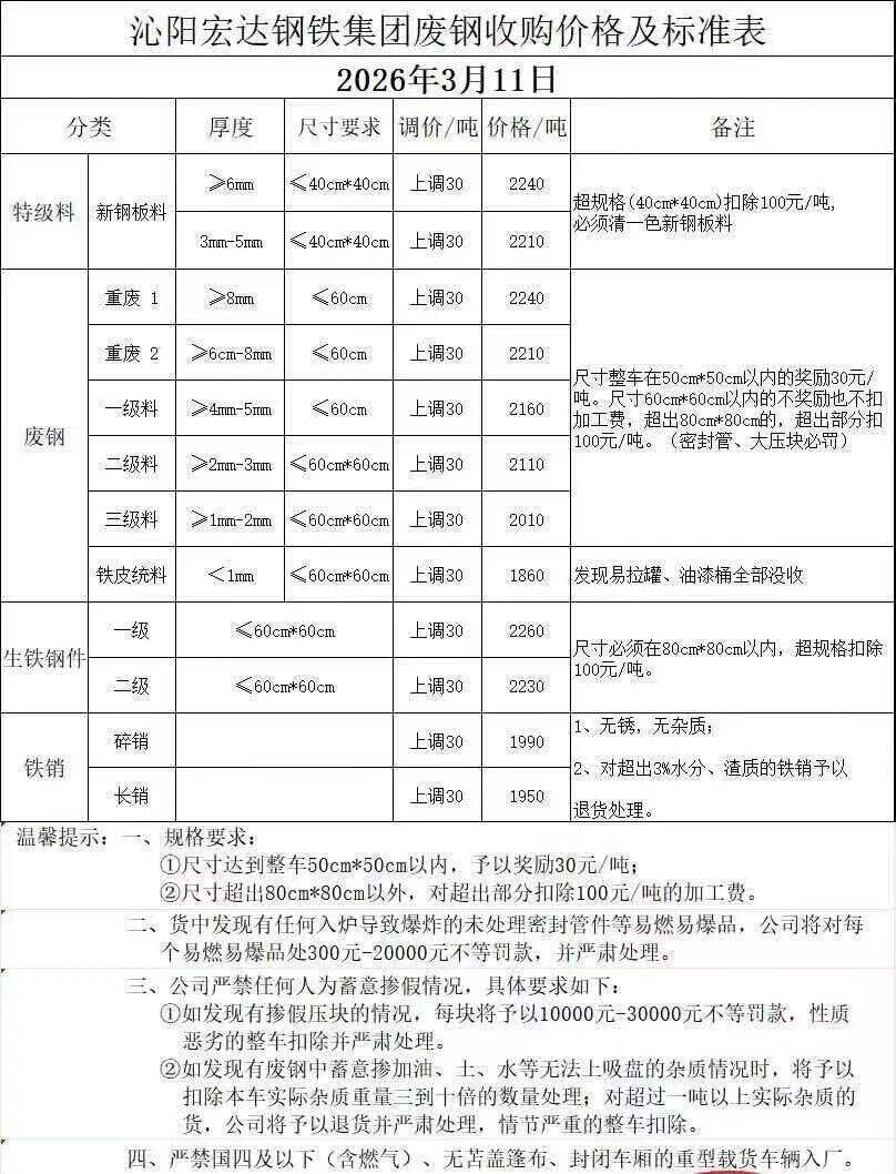 *月**日河南安陽亞新通知:**日*點起,廢鋼所有料型上調(diào)**-**